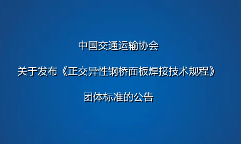 中國交通運輸協會關于發布《正交異性鋼橋面板焊接技術規程》團體標準的公告