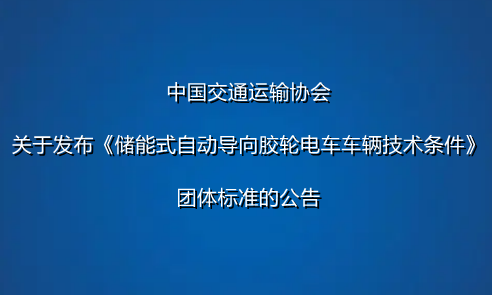 中國交通運輸協會關于發布《儲能式自動導向膠輪電車車輛技術條件》團體標準的公告