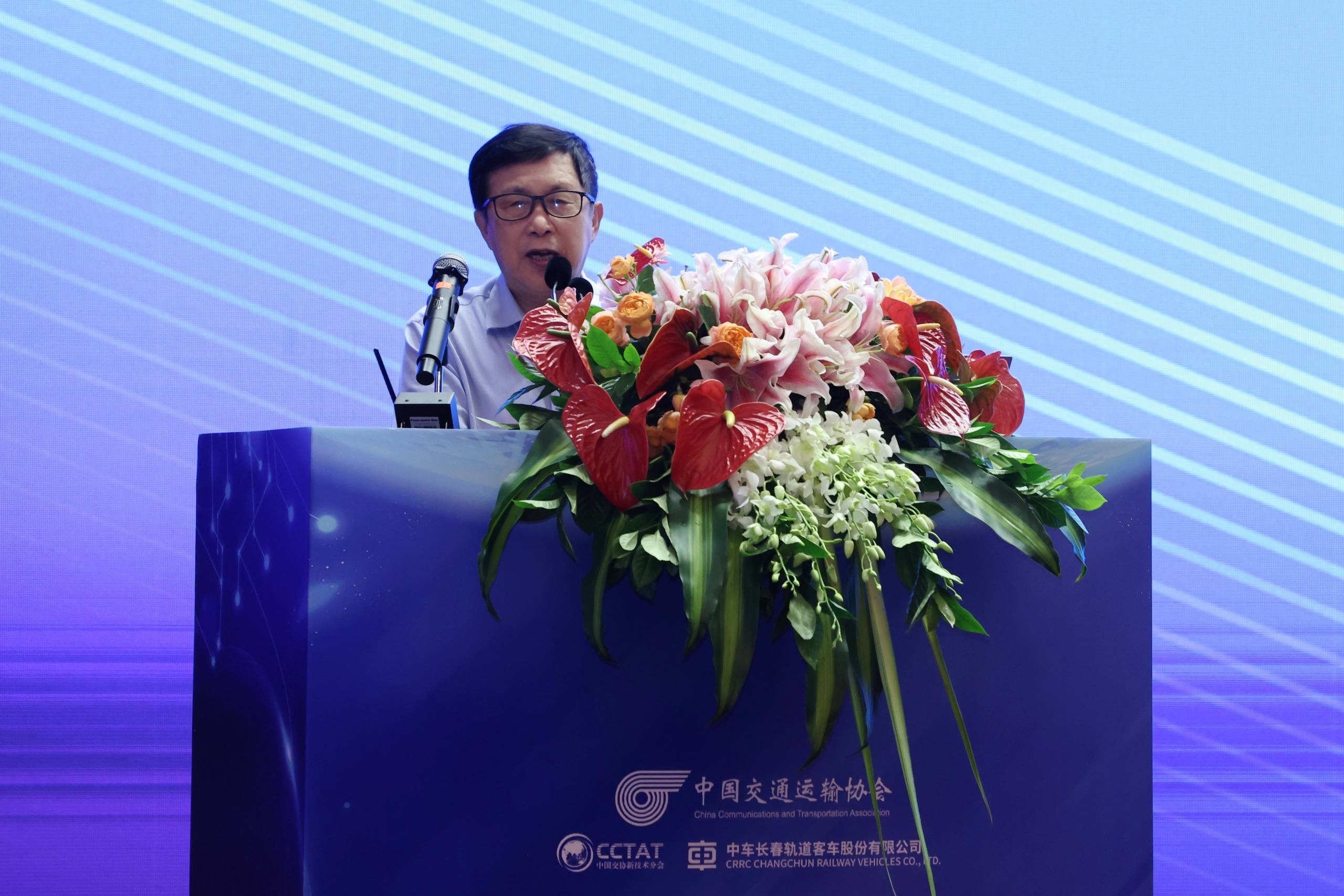 大會主旨報告環節,由中國交通運輸協會新技術促進分會副會長曹廣河主持。中國科學院院士、中國科學院長春光學精密機械與物理研究所研究員王立軍,中國科學院院士、長春應用化學研究所研究員陳學思,國家鐵路局設備監督管理司副司長弓瑞明,香港鐵路有限公司客運服務創新及科技(車務)總經理鄧紹祥,中車長客車股份公司副總工程師兼磁浮研究所所長于青松,鐵信誠認證服務(北京)有限公司執行董事楊洪權分別做題目為《半導體激光芯片與技術》生物可降解高分子材料及其應用》《鐵路裝備更新及重點支持方向報告》《城市軌道交通裝備數字化運維展望》《氫能軌道交通交通車輛技術研究現狀及展望》《淺析鐵路產品認證工作》的主旨報告。